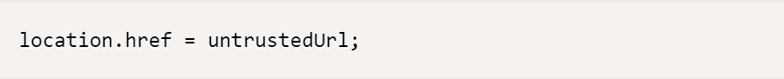 이 코드에서 untrustedUrl은 신뢰할 수 없는 URL이 들어있는 변수이다. 코드가 실행되면, 사용자의 브라우저가 untrustedUrl에 포함된 URL로 자동적으로 리다이렉트 된다.