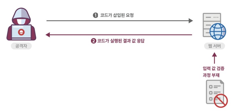 동적코드를 실행할 수 있는 함수를 사용하지 않는다. 필요 시, 실행 가능한 동적코드를 입력 값으로 받지 않도록 외부 입력값에 대하여 화이트리스트 방식으로 검증한다. 또는 유효한 문자만 포함하도록 동적 코드에 사용되는 사용자 입력 값을 필터링한다.