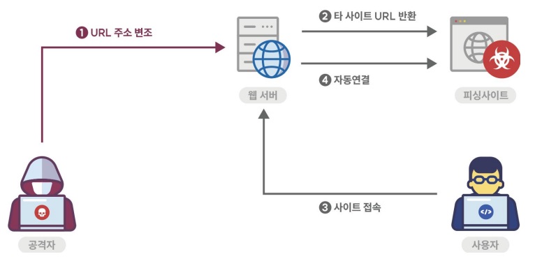 사용자가 입력하는 값을 외부 사이트 주소로 사용해 해당 사이트로 자동 접속하는 서버 프로그램은 피싱(Phishing) 공격에 노출되는 취약점을 가진다. 클라이언트에서 전송된 URL 주소로 연결하기 때문에 안전하다고 생각할 수 있으나, 공격자는 정상적인 폼 요청을 변조해 사용자가 위험한 URL로 접속할 수 있도록 공격할 수 있다.