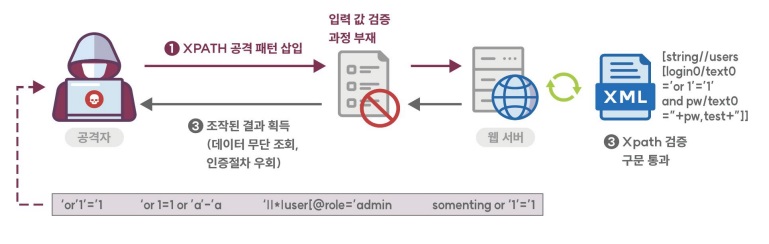 XQuery 또는 XPath 쿼리에 사용되는 외부 입력데이터에 대하여 특수문자 및 쿼리 예약어를 필터링 하고 파라미터화(Parameterized)된 쿼리문을 지원하는 XQuery를 사용한다.